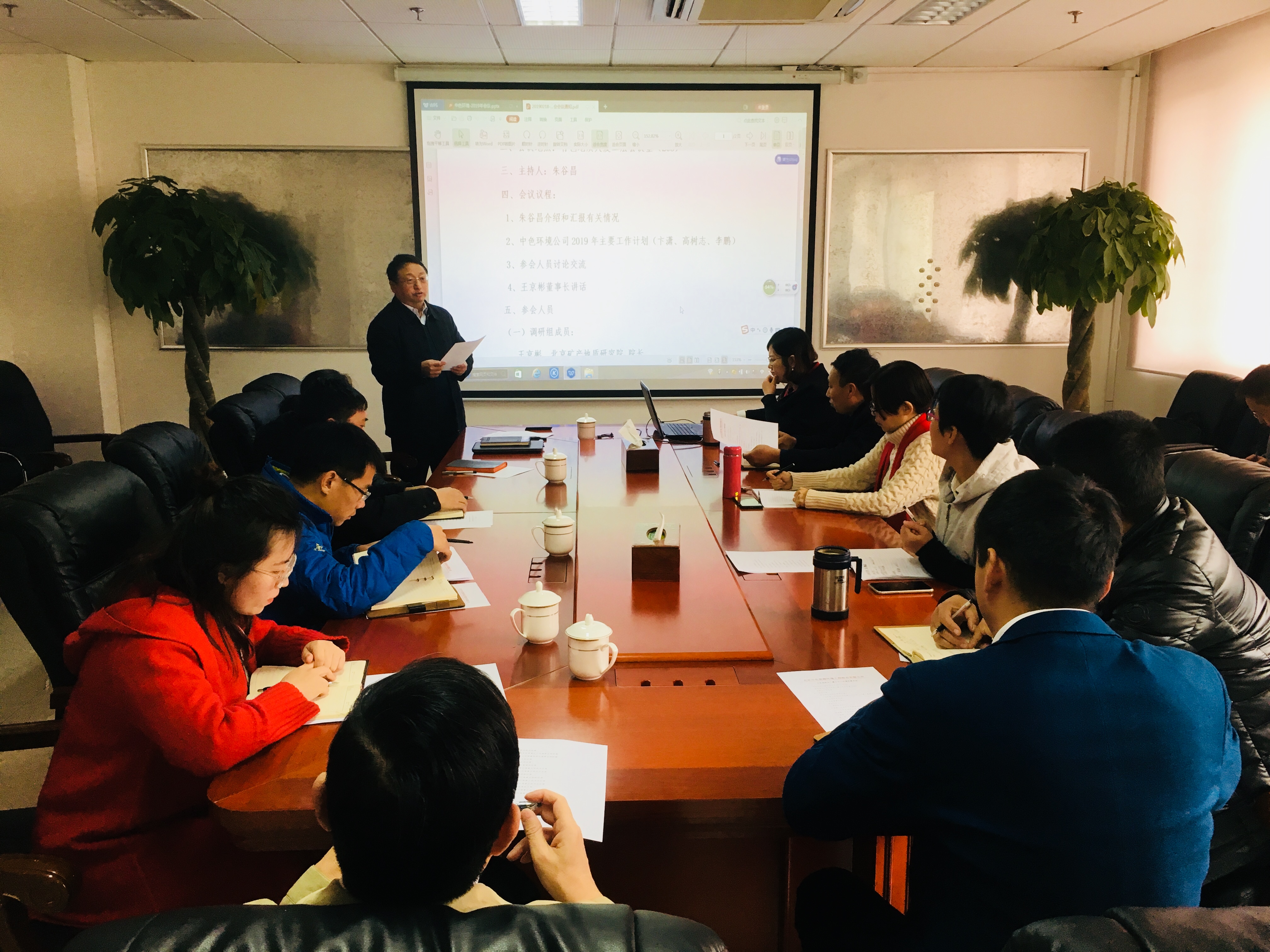 公司总经理朱谷昌、常务副总经理卞潇、副总经理高树志、李鹏以及各部门经理及技术骨干16人参会,大家对领导和专家的到访表示欢迎,回顾2018年,集团公司在民生地质业务有较快增长,出现了“中色测绘”和“亚投电子官方网站”两家营业收入过亿元的企业,2019年开局之时,共商企业“做大做强”大计,力争顺势而上,推动企业“市场+技术+管理”协同运营发展,齐心奋斗再创佳绩,为祖国七十周年华诞献礼。